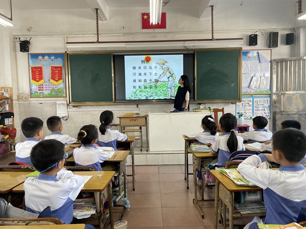 课上,各班老师通过图片、视频等方式,向同学们展示了粮食从播种、生长、收获到加工的过程,让同学们体会到粮食的来之不易。同学们进行了热烈的讨论,他们畅所欲言,讨论身边的浪费现象,并积极参与到“如何制止餐饮浪费”这一问题的讨论之中,大家纷纷表示会认真践行光盘行动,树立节约光荣、浪费可耻的意识,做到勤俭节约,不浪费、不奢侈、不攀比。
