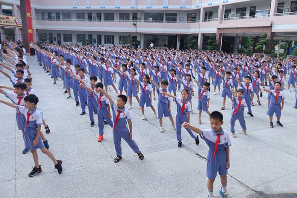 接着,全校学生在德育处和音乐科组的组织下,进行了“我爱老师”的集体献唱活动。伴随轻柔的音乐,全校学生一起嘹亮歌唱,配以丰富的动作,他们时而敬礼,时而鞠躬,时而献花。悠扬的歌声在红领巾上飘扬,在古二小学操场上空飞扬,同学们用自己的歌声为老师们送上节日最真挚的祝福。在阳光下,全校莘莘学子的歌声,整齐有力,动听悦耳,在场的所有教师都深深感受到了学生们的热情和爱意。