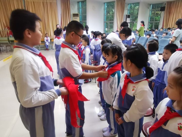 仪式在嘹亮的队歌中拉开序幕, 同学们在大队辅导员钟捷婷老师的指挥下高唱队歌,“星空体育是共产主义接班人,继承革命前辈的光荣传统……”嘹亮的歌声表达了同学们对少先队组织的向往与热爱。当老队员亲手把红领巾戴在31名新队员的胸前,新队员的那份激动与骄傲无以言表。