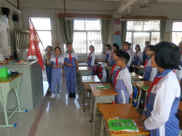 队会首先在庄严肃穆的《中国少年先锋队队歌》中拉开序幕,中队长手拿五角星加火炬的红旗,挺拔的屹立于台前,队员们用嘹亮整齐的歌声彰显了新时代队员的风采。随后,全体队员右手握拳,向着鲜红的队旗和国旗庄严宣誓,誓为共产主义事业贡献力量。