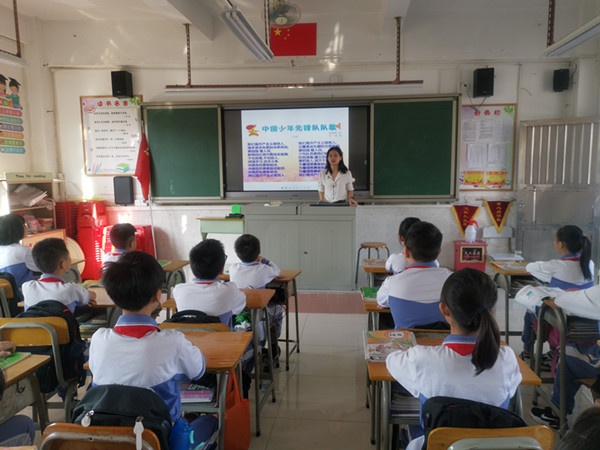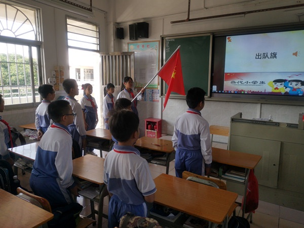 接着,中队辅导员讲述了灿烂辉煌的华夏文明,让队员个个心潮澎湃,民族自豪感顿时油然而生。回溯历史长河,辅导员又带大家回顾了祖国曾经遭受过的苦难。忆往昔峥嵘岁月稠,过去的屈辱不能遗忘,而如今的中国已经屹立于世界之巅,香港、澳门相继回归祖国怀抱、神舟七号成功着陆、北京奥运会成功举办,中国正在世界舞台上展现自己的大国风范。队员们在课堂上积极地讨论着祖国的伟大科学成就,并在辅导员老师的引导下思考作为一名少先队员如何践行爱国思想。
