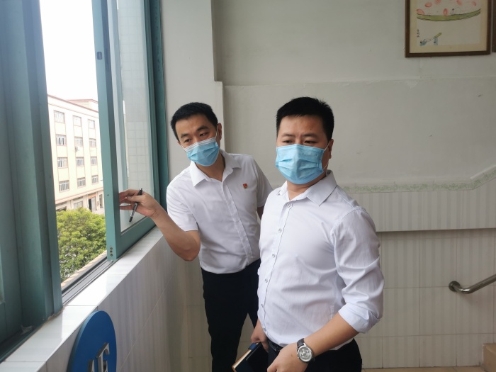 镇领导区美定一行人在姚校长的陪同下,分别察看了学校校园环境、校园文化,对学校的基础设施进行了解。特别对疫情防控工作进行了深入地了解并提出了具体的要求。