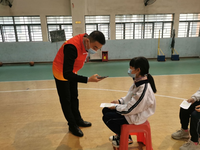 3月23日早上8时,古三小学党员先锋队队员们到达学校体育馆,协助医务人员开展相关准备工作。在党支部书记姚成辑同志的带领下,党员先锋队队员们分工明确,坚守不同的岗位,服务态度和蔼,工作认真耐心。在检测现场,有的队员负责扫码获取核酸验证码;有的队员一一核对学生的核酸验证码,以确保核酸检测工作的快速进行;还有的队员引导学生有序进行核酸检测和离场。每位党员站在疫情防控的前线,全心助力检测工作,发挥党员的先锋模范作用,诠释了党员的责任与担当。