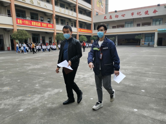 古三小学校长姚成辑、副校长蔡海雄等一众行政领导陪同检查小组一起,对学校及周边治安情况、安保情况、消防安全、饮水安全、疫情防控、学生心理健康等多方面进行了检查。并对校园周边、保安室、食堂、各教室、功能室等重要场所进行实地检查指导安全工作。