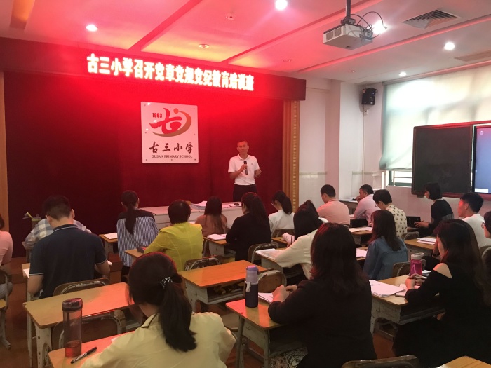 为深入学习党章党规党纪,进一步推动全面从严治党向纵深发展,切实强化全体教师的纪律观念和规矩意识,10月29日下午,古镇镇古三小学开展了“学党章党规 强党性意识”党章党规党纪专题教育培训活动。