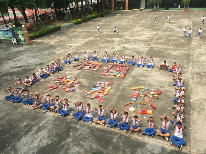 全校师生积极响应学校的倡议,纷纷从家里带回来了各种精美的月饼盒,在学校值勤员的协助下,齐心协力对月饼盒进行了整理和分类,全校共收集到月饼纸盒60个,月饼铁盒203个,一共263个。在回收了各班月饼盒之后,学校德育处组织同学同心协力摆出了“祖国,我爱您”的字样,用环保的形式表达了爱国之情。