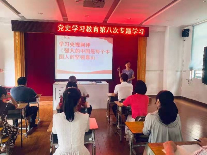 第二环节是由学校党支部书记孙亮珍带领党员学习两篇评论文章:人民日报评孟晚舟回国《没有任何力量能够阻挡中国前进的步伐》、央视网评《强大的中国是每个中国人的坚强靠山》。大家学习后纷纷抒发内心涌动的爱国之情,深深感受到当代中国人是幸福的,因为有一个强大的祖国母亲。