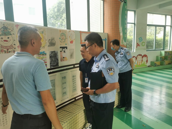 校园安全是学校工作的重中之重。为加强学校安全管理,维护校园安全稳定,有效遏制校园安全事故的发生,确保古三小学有一个安全、稳定、和谐的育人环境,9月26日上午,镇党委委员、公安分局局长潘军,古镇派出所所长张文胜,古三村委员廖炳标到古三小学进行安全工作专项督导。古三小学副校长姚成辑带领全体行政领导陪同检查。