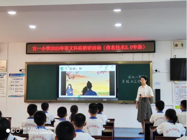 接着,古一小学容萱慧老师在活动室上了一节《送元二使安西》的语文公开课。课上,容老师将信息技术与教育教学深度融合,把理论在课堂教学中实践,让学生们理解诗歌意思,读好平仄,想象画面,让学生们很好地体会到了寓情于景的表达方式,感受到了诗歌的韵律美、节奏美。课后,全体语文老师根据这节课分析:这节课的语文能力点有哪些?是否达到了能力点?大家各抒己见,提问并研讨解答。