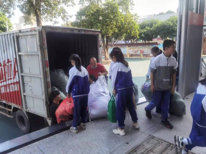 当天下午,“青年拾分爱,衣物银行”旧衣物回收活动也是校园里一道靓丽的风景线。或许,对于孩子们来说,这些是旧的衣服,已经穿不下了,但对于需要帮助的家庭来说,这就是他们过冬的保暖衣物。