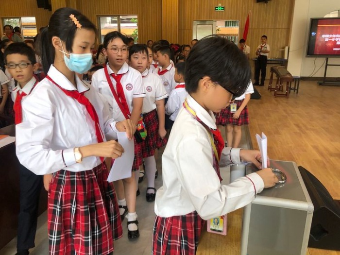 会议的第二个议程是进行少先队大队长竞选,11名优秀的少先队员通过精彩的演说竞选大队长。接着由各中队少先队员代表投票选出大队长。