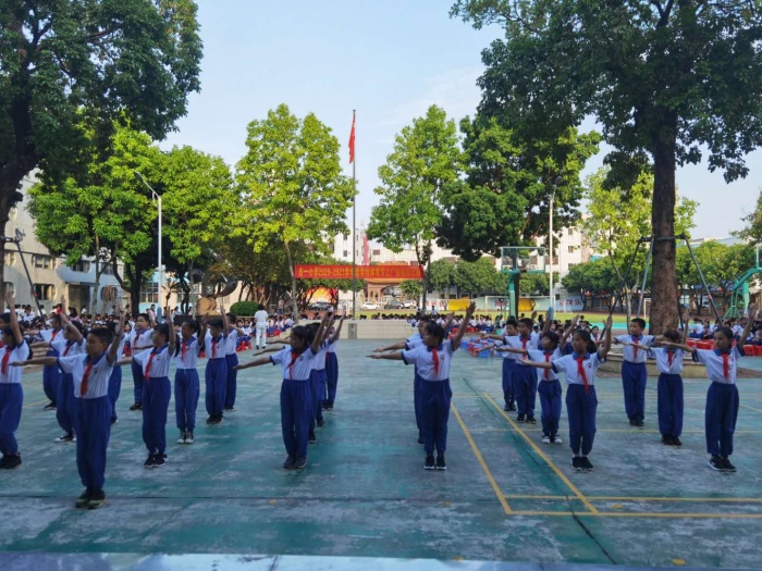 伴随着激昂的旋律和动感的节奏,同学们穿着洁白的跑鞋,系着鲜艳的红领巾,向大家展示他们反复训练的成果。听!孩子们嘹亮的口号声在校园中回荡;看!孩子们整齐的步伐是那么坚定有力!精神抖擞的古一学子,点亮了美丽的古一校园。整个比赛过程中,各个班级列队出场,步伐整齐、口号洪亮、精神抖擞,在轻松而舒缓的音律中,学生们挥臂、踢腿、拍手、跳跃,动作娴熟到位,张弛有度。各班同学发扬团结一致、奋发向上的精神,他们在阳光下热情欢快,动作中充满自信,微笑中洋溢着青春,充分展现了古一学子的活力和魅力。