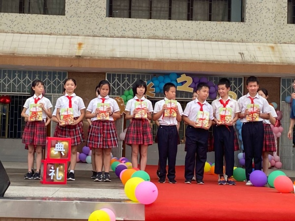 四点半,六年级的毕业典礼在和谐、感恩的氛围中拉开帷幕。在《少年》歌曲的环复中,老师带头,六年级的家长牵着自己孩子的手走过成长之门,并留下影像。然后,全校师生及到场家长一同参与庄重的升旗仪式,大声合唱《国歌》;两名优秀毕业生代表作国旗下讲话,他们回顾了难忘的六年小学生活,也给了师弟师妹们一些衷心的建议。随后,唐慧玉副校长作毕业致辞,祝贺孩子们顺利毕业,希望孩子们带着自己的梦想,向未来继续出发。紧接着,唐慧玉校长代表古一小学向毕业生捐赠礼物——书籍《优秀小学生要知道的50个礼仪》。随后家长代表讲话,祝愿孩子们快乐成长。最后,学生代表向校长及毕业班、退休老师赠送鲜花,以及西藏林芝向工布江达乡小学捐赠“友谊灯”,传递光芒,点亮伙伴,增进情谊。