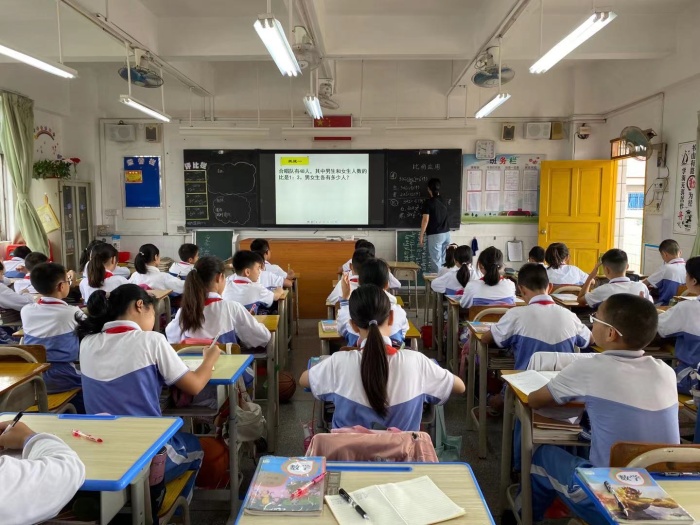 11月16日,袁燕华老师在六(3)班执教《比的应用》一课,她联系实际生活展示比在生活中的应用例子,使学生感受数学的实用性。