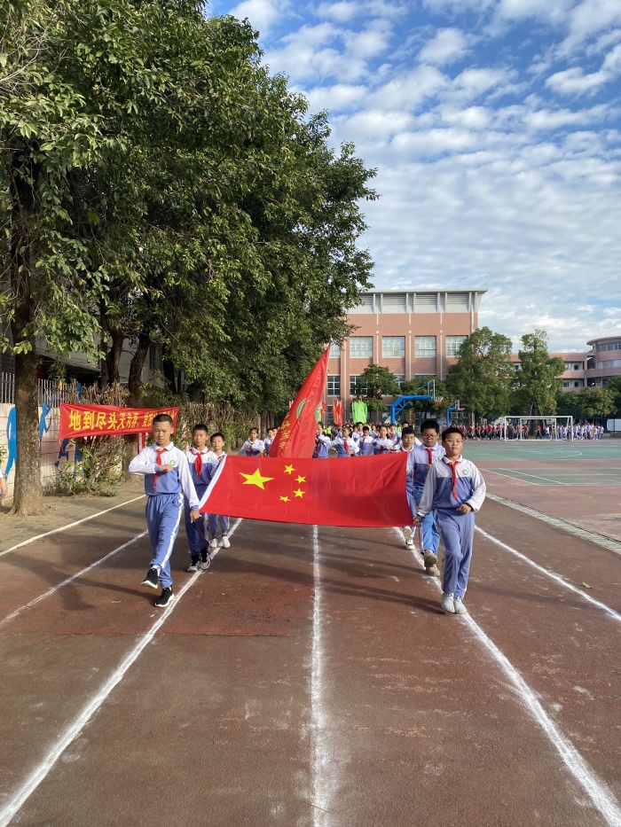 紧接着全体师生奏唱国歌、进行国旗仪式。庄重的升旗仪式结束后,校长陈富权致开幕辞、运动员代表宣誓、裁判员代表宣誓。最后校长陈富权宣布海洲第二小学第二十四届田径运动会正式开幕,精彩的运动比赛随着开始。