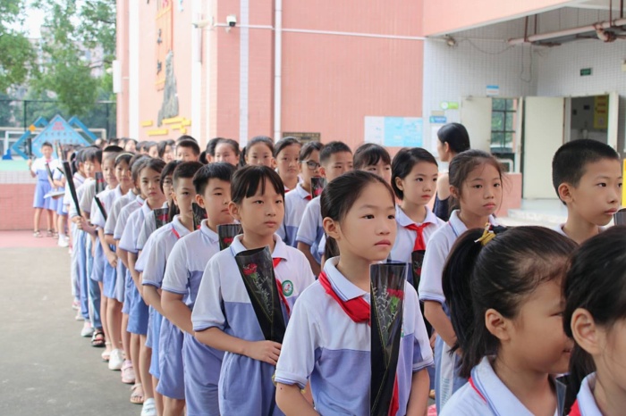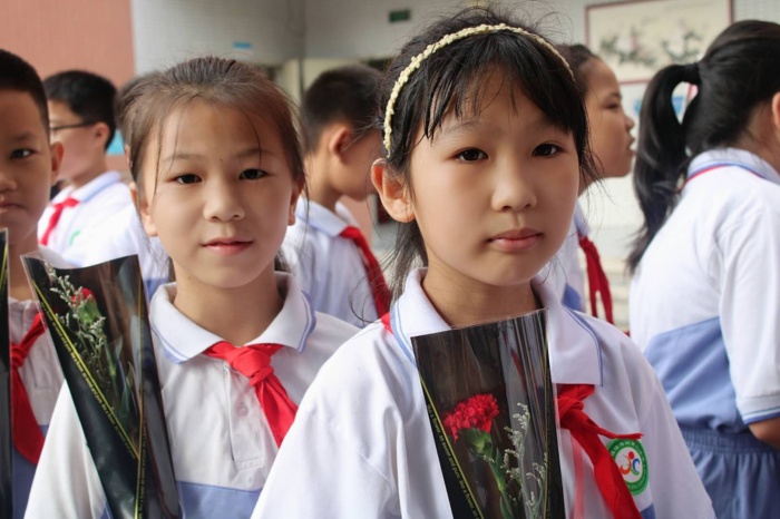 接着,海洲第二小学全体在职教师走到台前,接受学生代表的献花。献花礼仪队的同学们带着真挚的笑容,手捧美丽的鲜花走到老师跟前,满怀敬意地献给可亲可敬的老师们。全校学生用稚嫩美好的声音深情祝福,一句“老师,您辛苦了”发自肺腑,一个个鞠躬真情流露。听着同学们的祝福,接过精心准备的鲜花,老师们倍感温暖,每张脸庞都绽开出最美的笑容,幸福的感动在心中流淌。