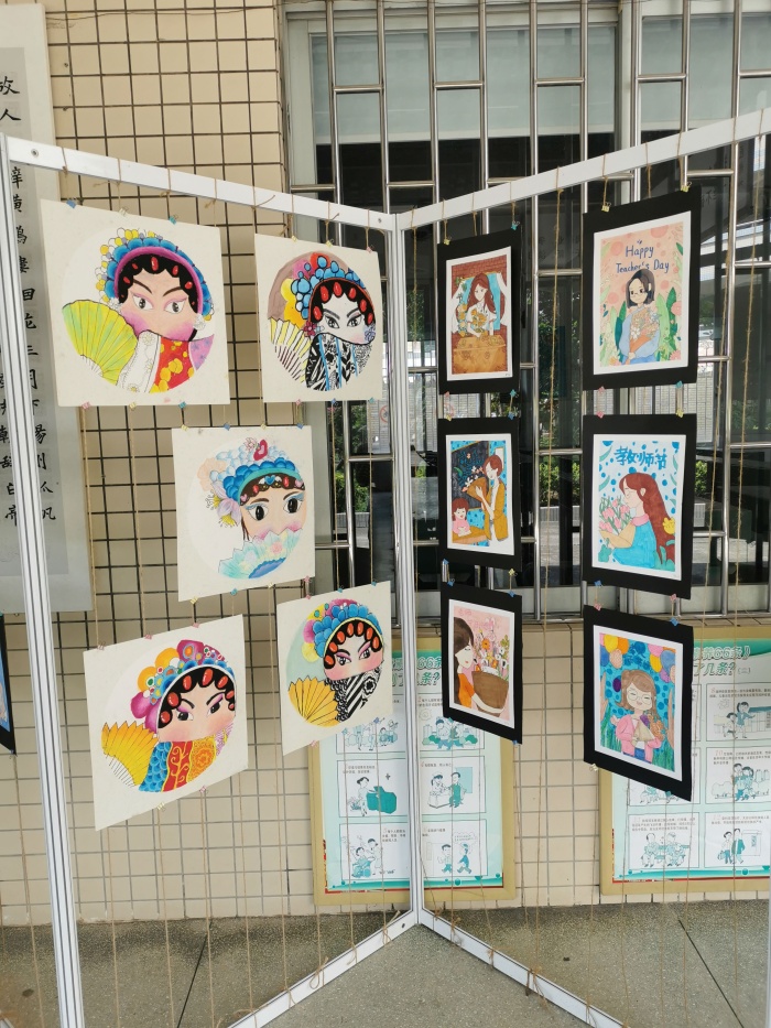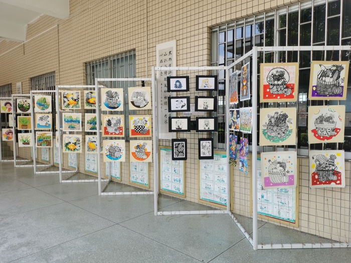学生绘画后,班主任和美术教师精心挑选出质量较高,形式多样,内容丰富的作品进行展示,吸引了不少师生驻足欣赏。