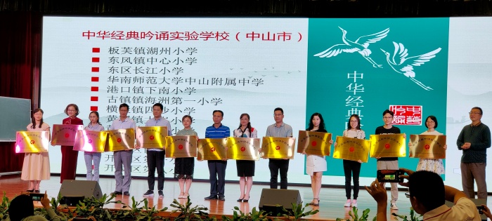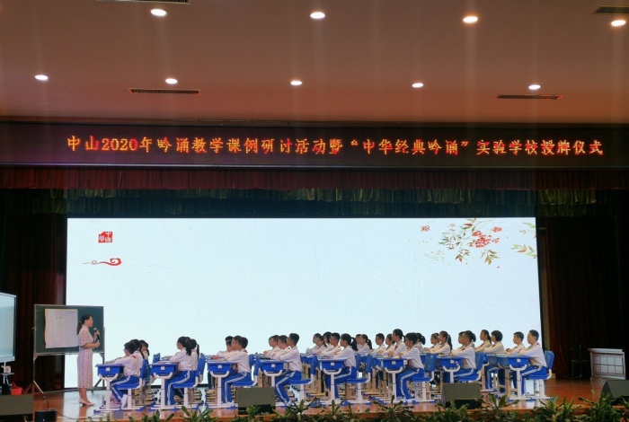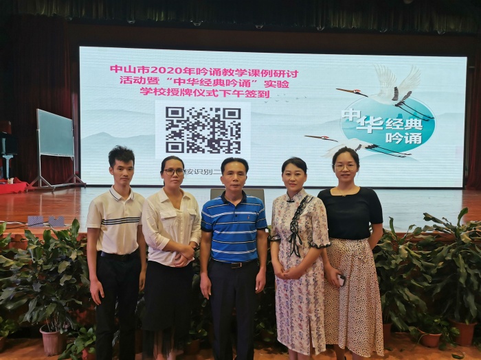 为推进中华优秀传统文化进校园,进课堂,提高古诗文吟诵教学的有效性,中山市教研室于10月16日在中山市华南师范大学中山附属中学举办中山市2020年吟诵教学课例研讨活动暨“中华经典吟诵实验学校”授牌仪式。海洲第一小学被评为首批“中山市中华经典吟诵实验学校”,潘启钦校长、赵红月主任、袁美欢老师、范佳慧老师和巫勇华老师参与本次活动。其中,赵红月主任受邀在本次活动中上吟诵教学的展示课例。