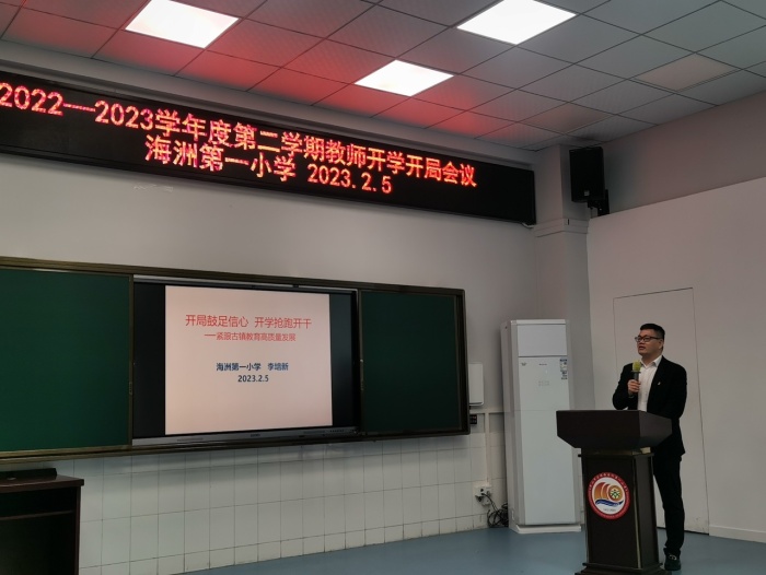 人勤春来早,奋进正当时。凡事预则立,不预则废。为保证开学工作平稳有序,同时为全体教职工指明新一年的奋斗目标,2月5日下午,海洲第一小学全体教职工齐聚报告厅开展2023年春季开学工作会议,新一年的教育教学征程由此正式开启。
