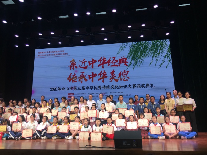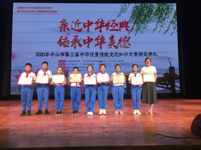 金秋九月,秋风习习,还送来了好消息。9月26日上午,镇南小学的郭淑玲老师和甘凯琳、张铭乐等八位学生代表,一同参加了中山市第三届中华优秀传统文化知识大赛的颁奖典礼。镇南小学除了在网上个人海选赛中取得优异成绩,还在校际PK赛中获得了二等奖。