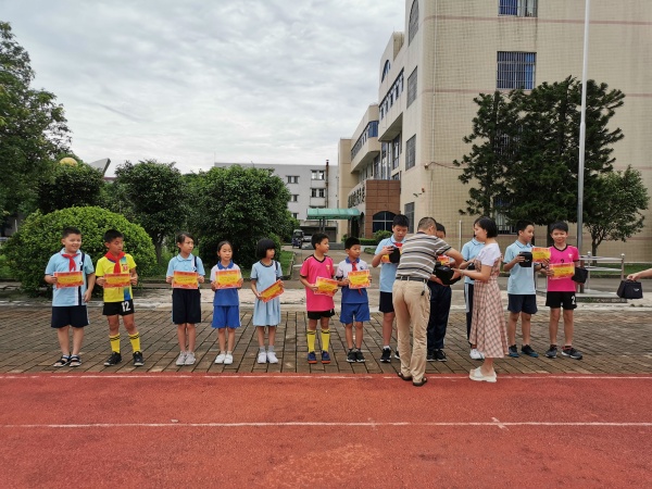 6月9号上午,港园小学举行了“校园足球游戏设计比赛”颁奖仪式,三年级孙语彤、四年级陈欣怡、五年级林逸山、六年级蒋万祺等12位同学上台领奖,港园小学刘奥鹏校长和课题组组长刘倩华老师给同学们颁奖,并给予他们鼓励和表扬。