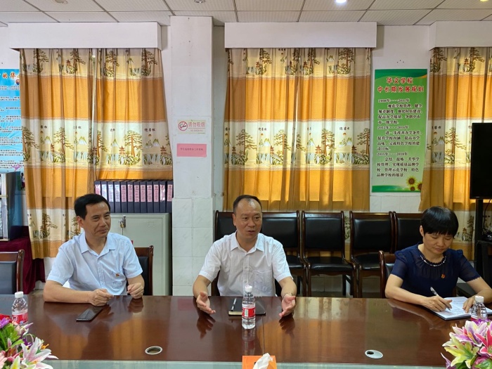 9月10日上午,横栏镇副镇长梁泽基、教育系统党委副书记梁锦珍莅临华文学校关怀慰问教师,华文学校谢春生校长及行政、教师代表陪同座谈。