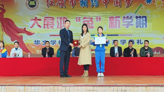 新年伊始,万象更新。学校党支部书记贾如意校长的致辞慷慨激昂,回顾过往,逐梦前行。贾校长对华文学子提出了新的要求与期望:号召同学们能坚守初心,立鸿鹄志,行稳致远,与华文共奋进,与时代共成长!同时向全校师生致以春天最美好的祝愿:希望全校师生们在青春之华文遇见最好之自己,谱写最美之华章!梁晓敏老师作为优秀教师的代表进行发言。梁晓敏老师希望同学们在学习的新征程上能携带着文明与高尚、理想与目标、自信与坚强、勤奋与努力这些宝贵的精神财富,一起乘长风,破万里浪!随后,学生代表进行发言。珍惜时间,严于律己是良训,她号召全体同学以新学期为新的起点,以满腔的热情、饱满的精神和坚定的信心,去迎接新学期的挑战。