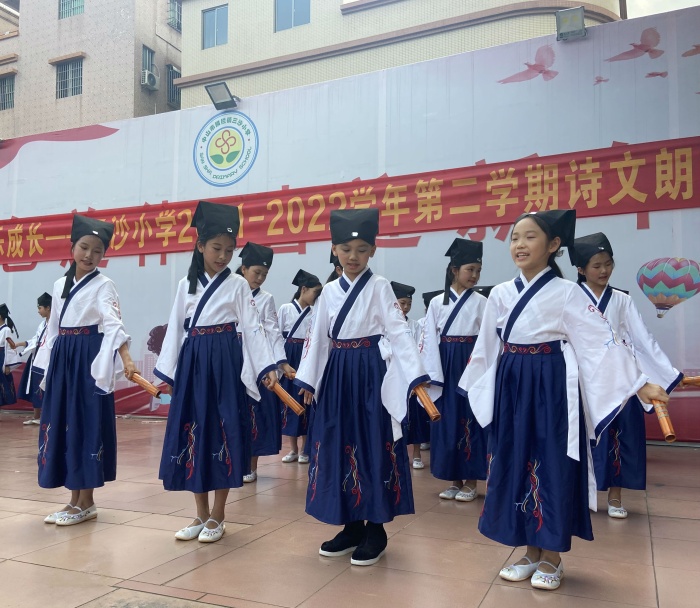 为了更好地传承和发扬中华文化,各年级积极备赛,诵读篇目丰富,有《三字经》《古诗串读》《弟子规》《中国话》《少年中国说》《文言文二则》等,全校掀起了诗文朗诵的热潮,朗朗书声充盈在校园的每一个角落。