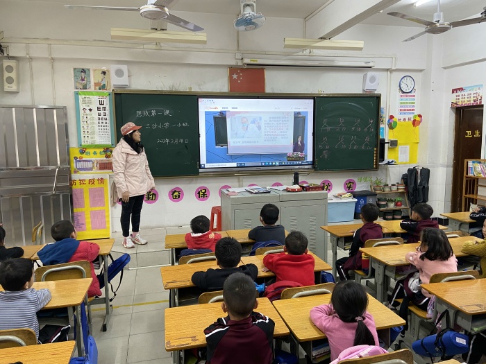 每年的3月5日都是学雷锋纪念日,正当全国各地疫情还是比较严峻的时候,学习和弘扬雷锋精神显得格外重要。2022年2月21日上午,横栏镇三沙小学结合当前疫情形势,由冯红燕校长给三小全体师生上了一堂“传承雷锋精神 致敬防疫英雄”的思政课,充分发挥学校思政课在落实立德树人根本任务的关键课程作用。校长思政第一课采用线下、线上相结合的模式开展。