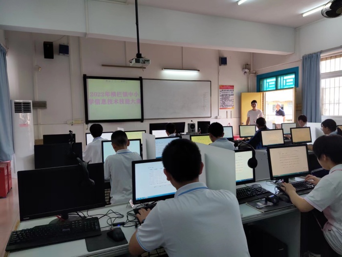 6月9日和10日的下午,中小学组的比赛先后在横栏中学和四沙小学举行。两个下午的比赛按照《横栏镇2022年中小学生信息技术技能大赛方案》规则有序进行,并在学生提交作品后组织了评委进行了现场评分。比赛期间,横栏镇教育和体育事务中心政工专干李伟业莅临巡视指导,充分肯定了比赛组织严密、秩序良好。