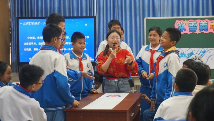共产党员李晓清老师唱着《没有共产党就没有新中国》和学生们一起学习了《党旗迎风扬 百年强国路》,诠释了全心全意为人民服务是共产党的宗旨;何芷茵老师以传递北京冬奥会火炬为线索,带领学生走进冬奥会,体会《冰雪美,中国强》;范松钰老师引导学生从衣、食、住、行的对比变化,体验《感恩祖国 富强中国》;陈秋燕老师执教的《中华富强人人有责》、龚云丹老师讲授的《祖国,我为您骄傲》和熊潇崎老师带来的《践行价值观,共筑富强梦》,从不同的方面回顾了祖国的富强之路,揭示了中国少年的强国责任。