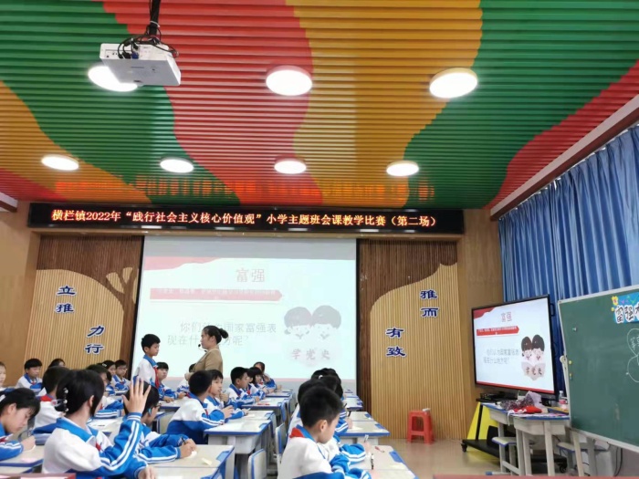 当天的比赛精彩纷呈。参赛老师们借助信息技术,围绕“践行社会主义核心价值观(富强)”这个主题,通过视频播放、图片展示、教师讲解、活动体验、小组合作、游戏激趣、畅谈理想、撰写心得等多种形式,引导学生树立正确的人生观和价值观,激发学生热爱中国共产党之情,决心为祖国的繁荣富强而努力学习。
