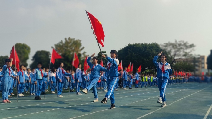 最后,大队辅导员梁佩珊宣布:四沙小学2022年“学雷锋 扬雅风 践雅行”学雷锋活动月正式启动。在大队辅导员的带领下,队员们在国旗下宣誓:“学习雷锋,从我做起,从现在做起,从身边的每一件小事做起,以实际行动诠释雷锋精神!”整齐响亮的宣誓声在校园上空回荡。