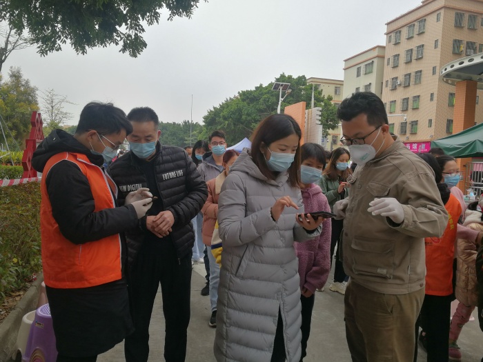 当天上午七点半,全员核酸检测工作正式开始。所有工作人员各就各位,各司其职。接受检测的群众首先按要求从四沙小学西门进入学校。检测动员组的工作人员配合保安测体温、查看粤康码、行程码等,并不断提醒群众扫描葵花码录入个人信息并截图保存。对不熟悉操作智能手机和操作有困难的群众,工作人员有的耐心地进行操作指导,有的干脆帮助群众进行操作,实在有困难的,再引导到葵花码打印组进行录入打印……一切工作都井然有序,直到群众做完检测安全离开四沙小学为止。