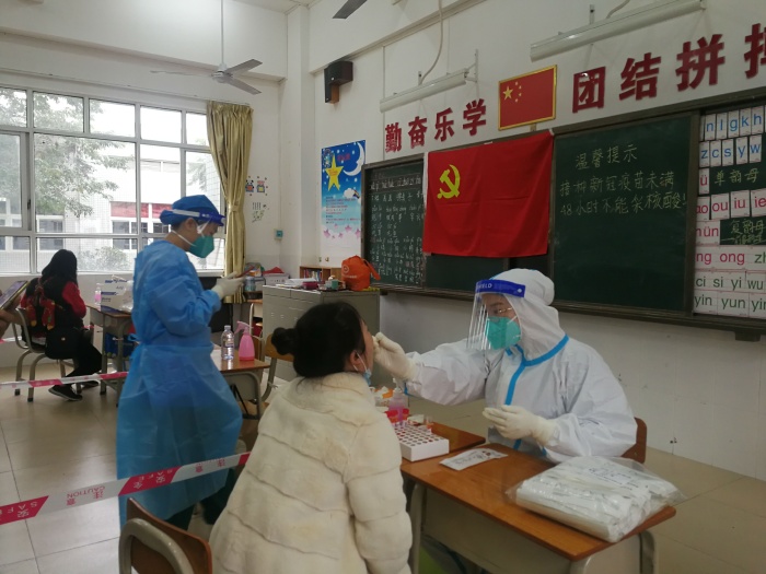 为了做好这次核酸检测工作,早在1月13日晚上,四沙小学党员教师和社区工作人员就连夜做好了准备工作。规划检测队伍行进线路,拉警戒线,布置检测室,制定应急预案……一切都有条不紊地进行着。当天夜里,1月14日参加核酸检测工作的全体党员教师70多人还按照镇政府要求首先全部完成了核酸检测,为参加核酸检测工作提供了健康保障。