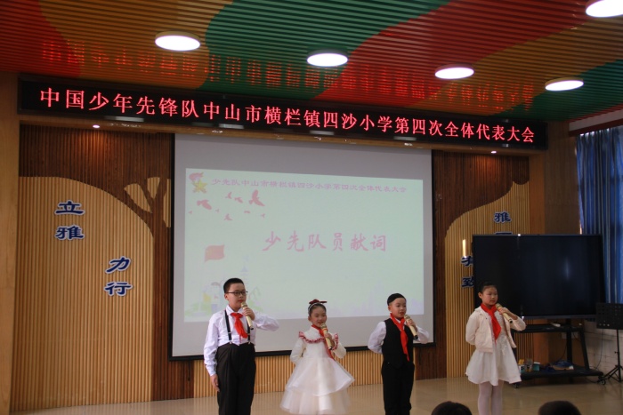 2021年12月1日下午,少先队中山市横栏镇四沙小学第四次代表大会顺利召开。250名少先队员代表和37名成人代表出席。大会号召全体少先队员学习全国少工委、团中央、教育部联合印发的《少先队改革方案》文件精神,学习全国少工委七届四次全会精神,带领队员们好好学习,从小学先锋,争做新时代先锋少年。