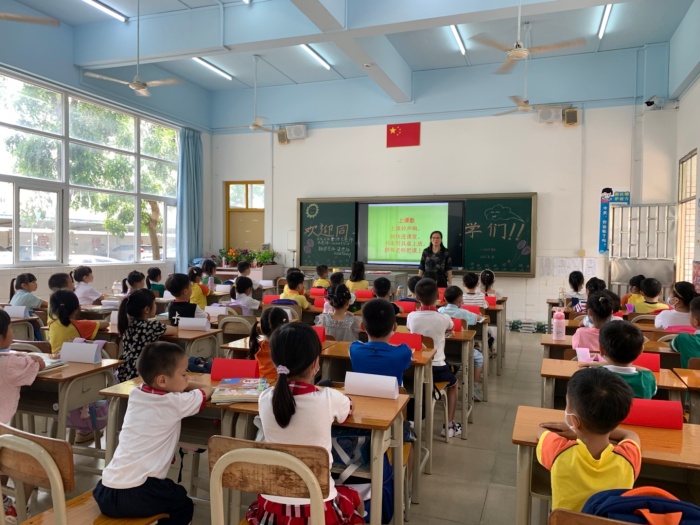 教室里,孩子们在老师的带领下开启入学常规教育,从认识老师、认识新同学开始,有礼貌大胆地介绍自己;从记住自己的班级位置开始,在游戏中学习简单好记的课堂常规口令,知道课间文明休息游戏的去处;初步学习听口令排队,做到快、静、齐,不讲话、不拥挤、不掉队。