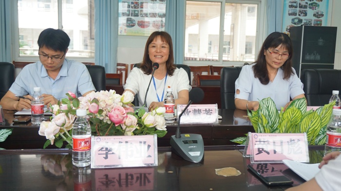 观摩课例后,交流活动继续在会议室举行。黄日彪一行观看了四沙小学简介宣传片《飞翔吧,四沙小学》,初步了解了学校办学规模、教师队伍建设、办学特色和取得成绩等方面的情况。四沙小学校长欧慧芳接着从学校特色的打造、师资队伍建设和学校的发展方向等方面进行了汇报,使大家对四沙小学有了更加深入的了解。同时,欧慧芳希望黄日彪一行对学校的发展多提宝贵意见,两校携手,共同提高。
