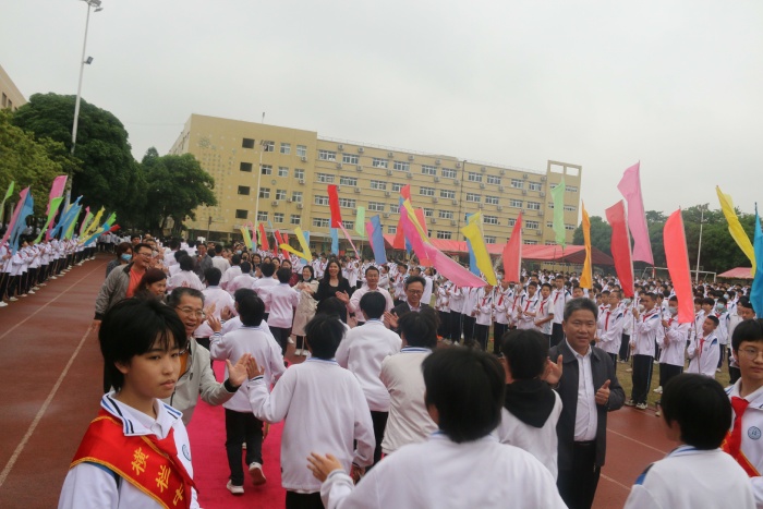 随后,初三全体同学依次走过红地毯,与在红毯两侧为他们加油鼓劲的全体初三老师一一击掌互动。他们奔跑的每一步,都是奔向梦想的一步,他们脸上洋溢着灿烂的笑容,迈着坚定的步伐,怀着必胜的信念和希望,向中考进发!