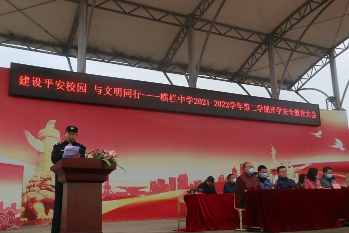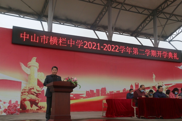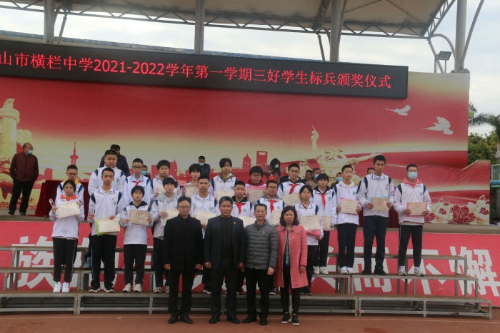 2月14日上午,横栏中学2021-2022学年春季开学典礼暨颁奖仪式在学校运动场举行。横栏中学党总支书记、校长黎碧东作开学致辞,学校法制副校长、镇西涌派出所林绍丰警官作了法制安全讲座。在典礼上还为各年级上学期获得 “三好学生标兵”“十大君子”“十大优秀学生会干部”的学生进行了颁奖。