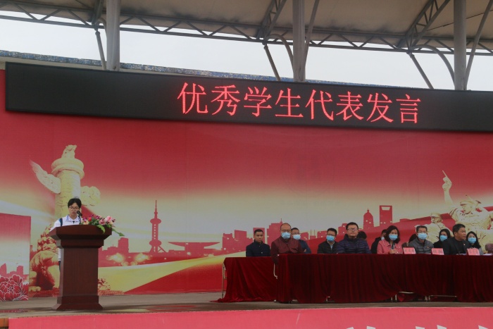 随后,来自初二18班的朱彩玲和初三7班的黎倩雯同学作为优秀学生代表作了表态性发言。他们号召全体同学在新学期要播种新的梦想,收获新的希望,要以乐观的心态、勤奋的态度、积极的行动、科学的方法努力向前奔跑,取得更加优异的成绩。他们乐观的心态、刻苦的态度、优异的成绩赢得了同学们的阵阵掌声。