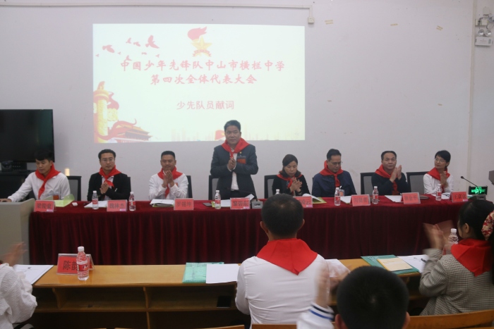 在嘹亮的队歌声中,主持人宣布大会正式开始。刘诗仪同学作为少先队代表献词,全场掌声雷动。本次大会传达学习了党的十九届六中全会精神,审议并通过了中山市横栏中学第四届大队委员会工作报告、中国少年先锋队中山市横栏中学第四次代表大会选举办法(草案)等。选举产生了中国少年先锋队中山市横栏中学第四届工作委员会委员,选举出黎碧东同志当选少工委主任,刘凌云同志、罗锡坤同志当选少工委副主任,聘任王京京老师为学校少先队总辅导员。