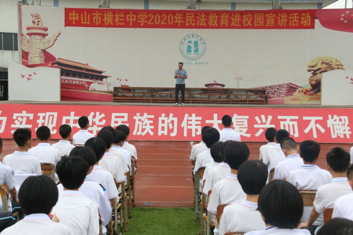 为营造浓厚的《民法典》普法学习氛围,弘扬法治精神,2020年10月13日,中山市横栏中学诚邀广东雅山律师事务所陈经文律师来到学校,为横栏中学全体同学开展《民法典》普法宣讲活动。活动由学校德育处罗锡坤主任主持。