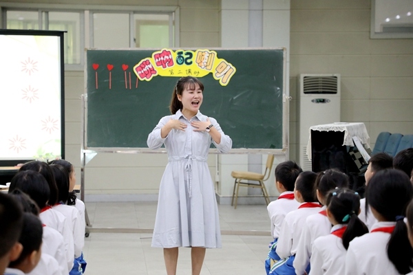 第二节课是华附小学校区的陈小静老师执教的二年级《唢呐配喇叭》第二课时。本节课陈老师根据二年级孩子的特点创设情景,用闯关的方式激励学生们学习,用生动的语言,优美的肢体动作和动听的歌声让学生感受美、体验美、表现美。由于是第二课时,熟歌练本领,陈小静老师运用柯达伊教学法,让学生们在音准、节奏、听觉上都有了基本认知,对于提高孩子们的音乐基本素养非常有帮助。