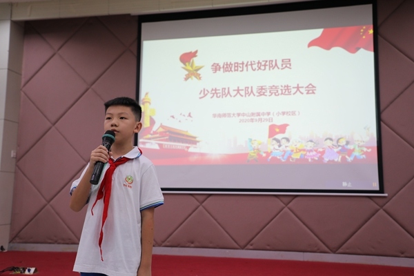 为充分展示少先队员的风采,提升他们的个人综合素质,给他们一个锻炼和展示自我的机会,优化大队部结构,为少先队注入新鲜血液。2020年9月29日晚上,中山华附小学校区在学校报告厅举行了少先队大队委竞选活动。