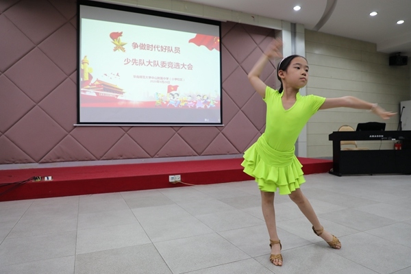 本次大队委竞选活动由三、四、五年级各中队推选一名队员参加。首先,他们依抽签顺序,分别进行竞职演讲及才艺展示。候选队员们通过激情饱满的演讲以及彰显个性的才艺展示,赢得了与会少先队员代表们的阵阵掌声。