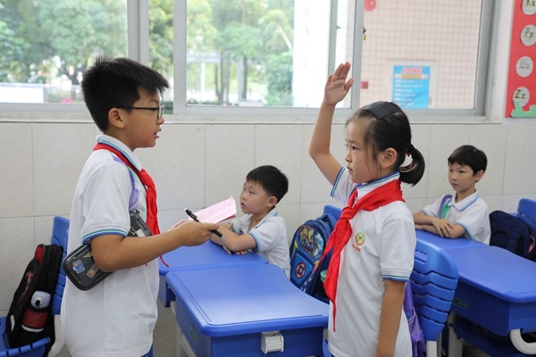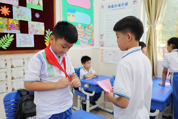 中山华附小学校区入队教育让每一位准队员在浓浓的少先队文化中快乐学习、自信成长。同学们,为自己即将成为一名少先队员而骄傲与自豪吧!愿你们以诚实勇敢、活泼团结的作风为少先队增光添彩!