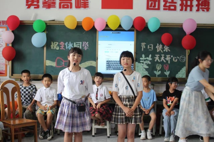 今年的活动主题为“展示自我,欢庆六一”,力求让每一个孩子有表演的机会,都成为活动场上的主人、节日的主角。装扮一新的教室里,充满了欢庆的气息,孩子们欢聚一堂,兴致盎然。各班的文艺节目都由孩子们自编自演:唱歌、舞蹈、游戏、讲故事……一系列的活动充分展现了他们多才多艺、个性张扬的一面。一个又一个精彩有趣的文娱节目将班级联欢活动不断推向高潮。老师们兴致勃勃地走进各自班级,走近孩子,和孩子们一起联欢,一起感受、回味童年的欢乐。教室成了欢乐的海洋,快乐与幸福溢满了每位同学的脸。