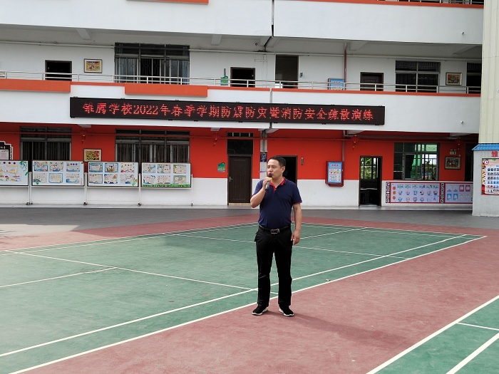 上午9时,随着警报声的响起,消防安全应急疏散演练正式开始。各班班主任老师迅速到达各班协助上课老师一起组织学生疏散,其他老师们也在第一时间赶到自己当时所在楼层拐角处配合疏散学生。各班学生在老师们的指挥下,弯着腰,猫着步,用手帕、毛巾等捂住口鼻,沿着学校指定楼梯口快速前进,有序撤离到学校操场的安全地带,耗时2分多钟。随着各班班主任清点人数,并层层上报,全校1000余名师生全部安全疏散完毕。随后,安全处黄字由主任对此次消防应急疏散演练活动进行了点评,表扬了在演练活动中做得好的班级,并强调一旦身边发生突发事件,要沉着应对,做好及时报告和安全逃生工作,有效掌握在危险环境中迅速逃生、自救、互救的基本方法,切实提高抵御和应对紧急突发事件的能力。最后,雏鹰学校张华校长对本次活动进行了细致的总结,希望全体师生以这次演练为契机,继续牢固树立防火安全意识,不断学习防火安全知识,要防患于未然,共建平安校园。
