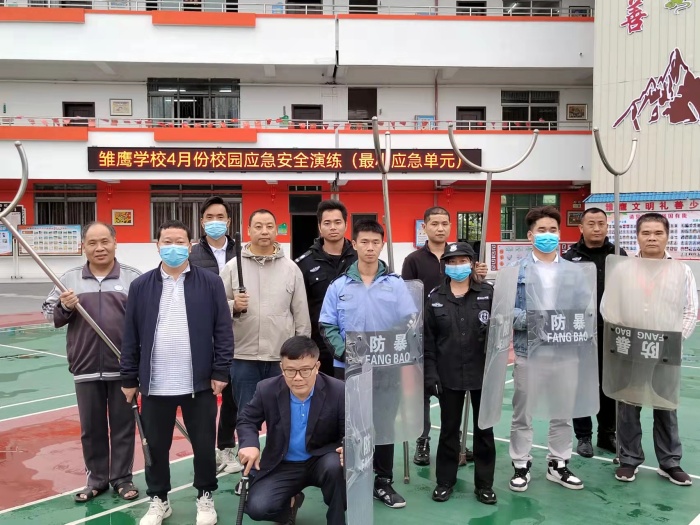 雏鹰学校高度重视校园安全保卫工作,把师生生命安全放在第一位,制定了学校安保防范工作措施,积极完善反恐防暴应急机制,加强安保队伍建设、做好安保器材储备,开展安保隐患排查和教育宣传工作。